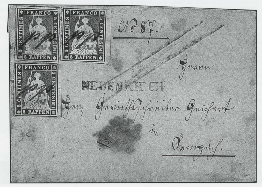 Laut Jean Winkler ist der frühest bekannte Stempel in der Schweiz ein Einzeiler «GENEVE» vom 29.4.1700, auf einem Brief von Genf nach St. Gilles (F), er wurde im französischen Postamt zu Genf verwendet.