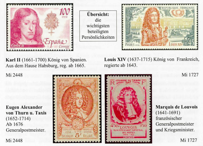 Quellen: 1. Enzyklopädie der Weltgeschichte von A. Randa (1968). 2. Politisches Schatzkästlein aus dem 16ten Jahrhundert (1979). 3. Völker, Staaten und Kulturen, ein Kartenwerk zur Geschichte, Westermann Verlag. 4. Archiv für deutsche Postgeschichte 1/90 5. Münzberg 6. Quellen zur Geschichte des europäischen Postwesens 1501-1806 von Martin Dallmeier (Aktenauszüge) im Text bezeichnet mit (Dal) 1. Beleg von 1697 aus der Sammlung des Verfassers