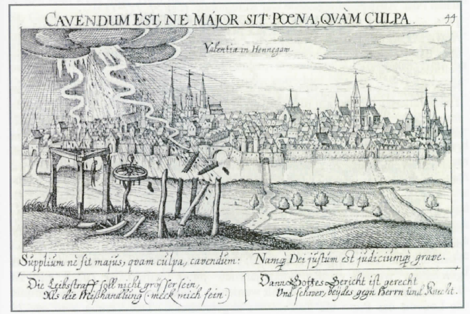 Valenciennes im Hennegau um 1645, links im Vordergrund symbolische Darstellung. (2) Münzberg beschreibt Valenciennes in seinem Stationen-Katalog wie folgt; Niederländische Postanstalt in der Grafschaft Hennegau: 1633 office de poste, 1678 an Frankreich. TTÜberrheinische Postanstalt ist nur zu vermuten, es ist eher anzunehmen, dass es sich um eine Austauschstelle handelte und das Postbüro französisch war.
