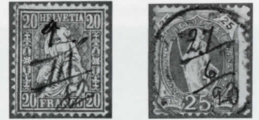 a) Ce type se rencontre sur des timbres suisses mal obliteres au depart avec le timbre ä date, d'oü indication de lieu (Fig. 22).
