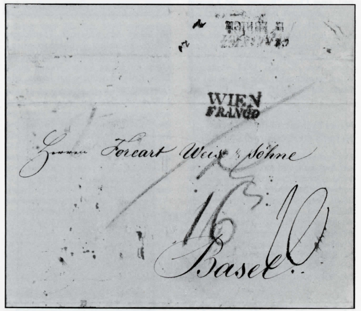 Brief von Wien 1831 nach Basel, in Zürich desinfiziert und mit O GEREINIGT IN ZÜRICH (Winkler Nr. 1297) versehen.