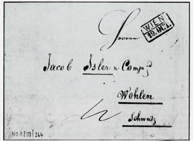 Unfrei am 19. Oktober 1850 in Wien nach der Schweiz aufgegeben; Taxvermerk adressseitig "12" Kreuzer für Gemeinschaftsporto der zweiten Entfernungsstufe über 10 Meilen, Normalbrief bis zu l/2 Loth Gewicht.