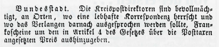 Ein in der philatelistischen Literatur noch nie erwähntes «Geheimnis» sei hier «gelüftet». Die NZZ (Neue Zürcher Zeitung) publizierte in Nr. 35 vom 4. Febr. 1850 den untenstehenden Text. War damit die Winterthur schon am 4. oder 5. Febr. 1850 am Postschalter in Zürich erhältlich? Das weiss man noch nicht. Das bisher festgehaltene FD für die Winterthur datiert erst vom 25. Febr. 1850: Winterthur-Brief von Zürich an «Ott im Schulhaus», rote und schwarze Rosette, roter Ortsstempel, Beleg ausgestellt an der Internaba 1974 von Anne Boyd Lichtenstein. Ferner ist auch ein Brief vom 1. März 1850 von Zürich nach «Wetschweil» bekannt: Waagrechtes Winterthur-Paar, schwarze Rosetten, roter Abgangsstempel. (Das in Nummer 30 der POSTGESCHICHTE im Artikel «Die Einführung der eidgen. Briefmarken in Zürich auf den 1. Okt. 1850» für die Winterthur angegebene FD vom 15. März 1850 ist zu korrigieren). Es scheint, dass die Stadt-Zürcher mit «ihrer» Winterthur zufrieden waren, weshalb am 5. April 1850 das eidgenössische Postdepartement die Kreispostdirektion Zürich beauftragte, auch in Winterthur, Richterswil, Wädenswil, Zug, Schaffhausen und Frauenfeld eine «Ortspost» einzuführen. Kennen Sie viele Winterthur-Briefe z.B. von Richterswil oder Wädenswil? Doch darüber einmal später.