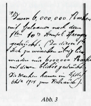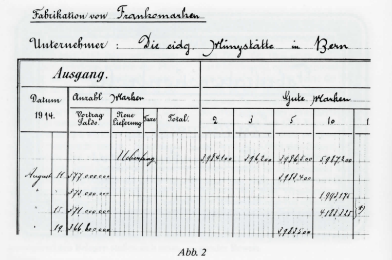 Diese führten zu einer wahrlich überraschenden Entdeckung: Es handelt sich um peinlich genaue (Fabrikationskontrollen) (Abb. 1). Sie werden zweifellos noch weitere wertvolle Hinweise über mögliche Frühdaten der Frankomarken von 1904 bis 1916 geben,denn alle ersten und folgenden Druckdaten (nach Drucktagen) sind für jede einzelne dieser Marken exakt aufgelistet.