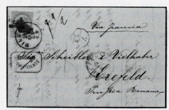 Abb. 10: Brief aus Rom nach Dresden 5.1.1861, über Paris mit Stempel «F./37» Versehen, weiter über Aachen